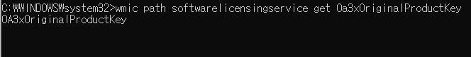 >>wmic path softwarelicensingservice get Oa3xOriginalProductKey