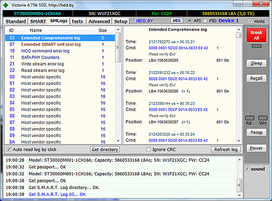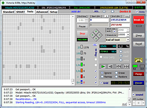 USB 브리지를 통해 드라이브로 작업하는 Victoria는 HDD 제조업체의 유틸리티에 비해 제한 사항이 훨씬 적습니다.