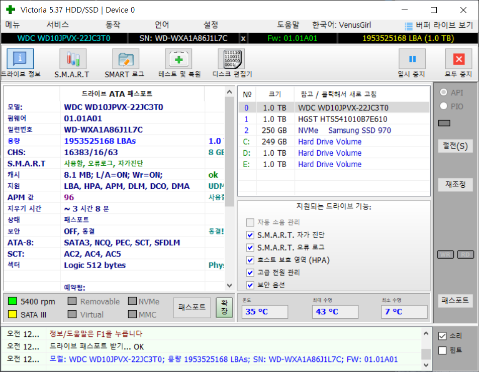 HDD 및 SSD 내부 SMART 로그 보기, 분석, 읽기 및 쓰기 NEW