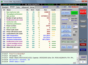 Victoria 프로그램은 SMART 잡지에 액세스하고 편리한 방식으로 콘텐츠를 표시할 수 있습니다. 또한 동일한 프로그램에서 실행할 수 있는 내장 SMART 테스트의 결과를 확인한 다음 로그에서 결과를 볼 수 있습니다.