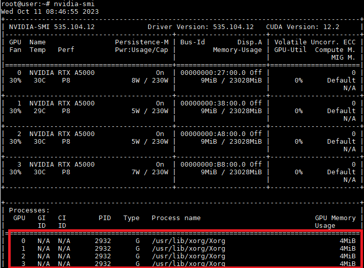 해당 시스템 nvidia-smi GPU 개별로 4MiB씩 낭비한다.
