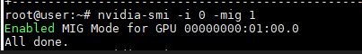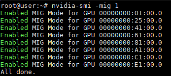 >> nvidia-smi -mig 1 ///모든 GPU mig enable