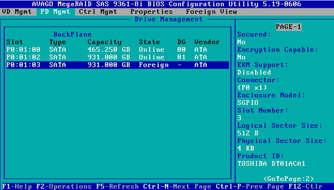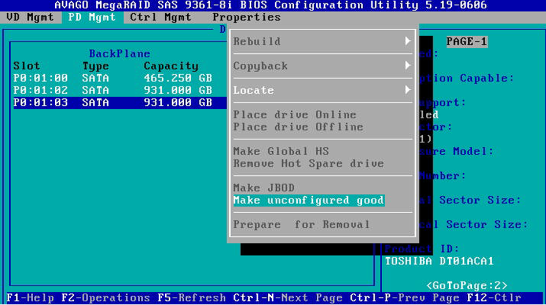 F2 - Make unconfigured good./진행되지 않는다면 디스크 불량입니다. 디스크를 새 디스크로 교체해주세요.