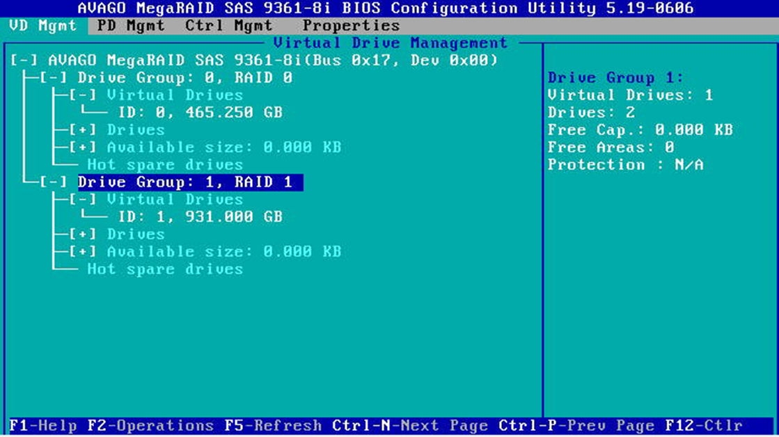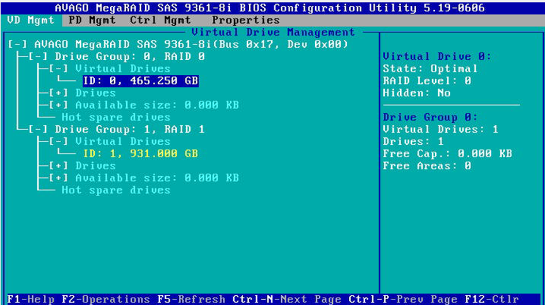 문제 상황 발생 재연: VD Mgmt. /RAID 1 구성 및 레이드 1멤버 디스크 1ea 분리합니다. ->