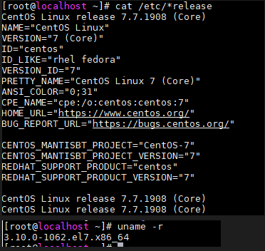 <별도로 설치한 CentOS7.7의 커널버전>