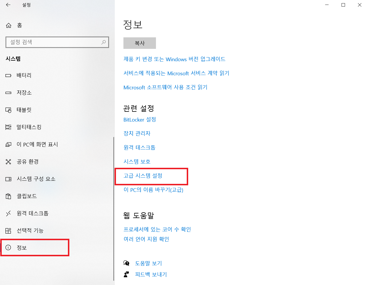 정보-고급 시스템 설정