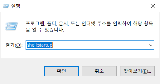 시작+ R -> 'shell:startup'