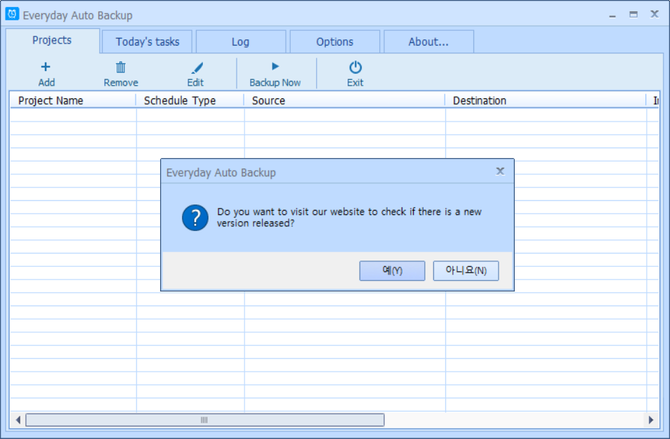 Windows에서 백업이 필요할 때 사용하는 프리웨어 Everyday auto backup입니다.
