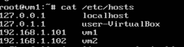 각각 vm1의 인터페이스(192.168.1.101)과 vm2의 인터페이스 (192.168.1.102)을 /etc/hosts에 등록해뒀다.