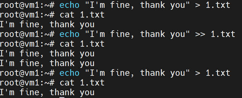# echo "1'm fine, thank you" >> 1.txt