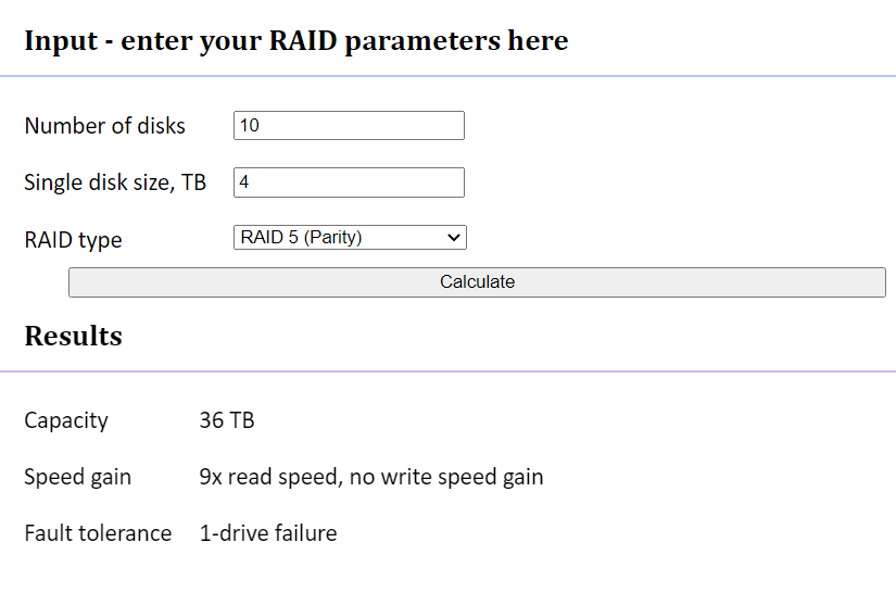 Free RAID Calculator - Caclulate RAID Array Capacity and Fault Tolerance.