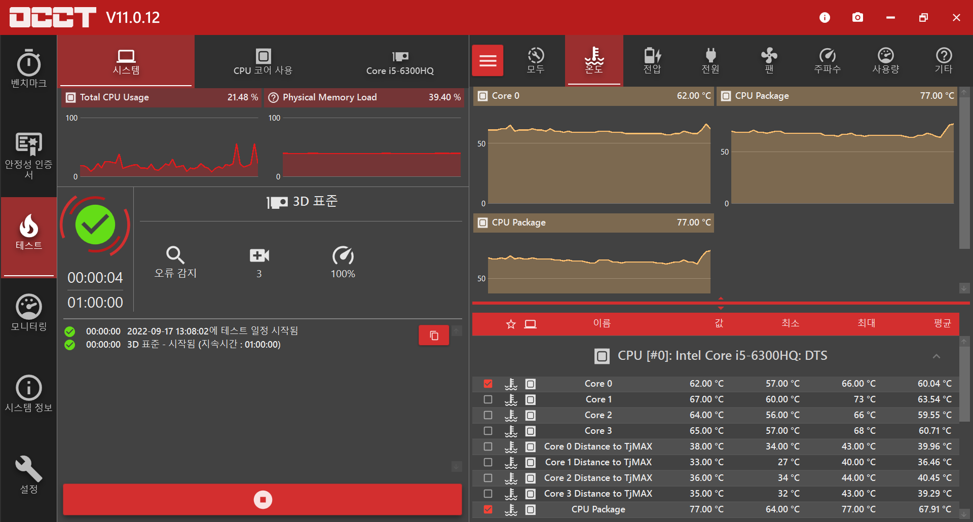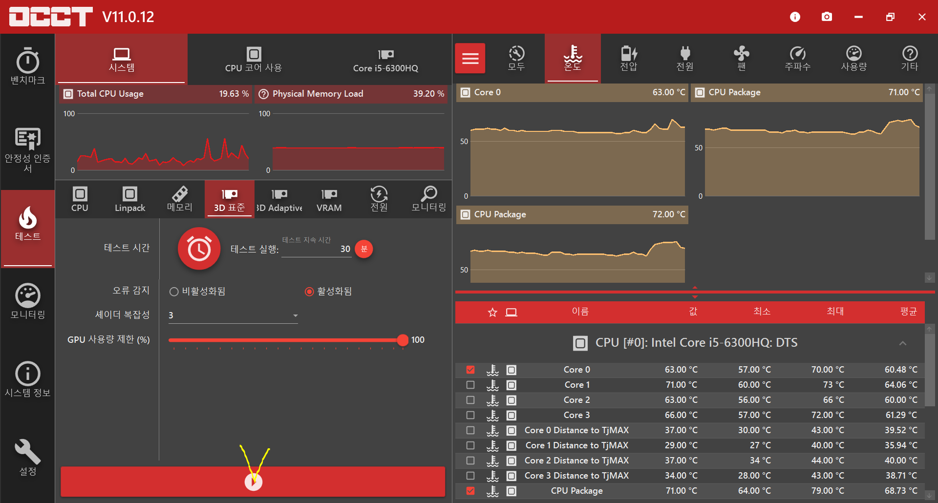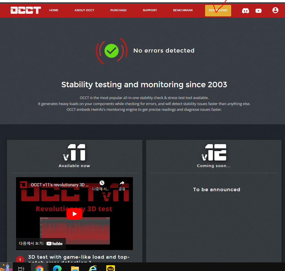OCCT의 STABILITY TESTING을 통해, 부하를 발생시켜 GPU에 불량을 재현시킬 수 있다.