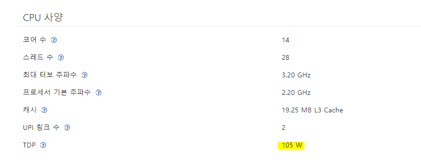 CPU의 TDP는 Ark intel 에서 확인가능.
