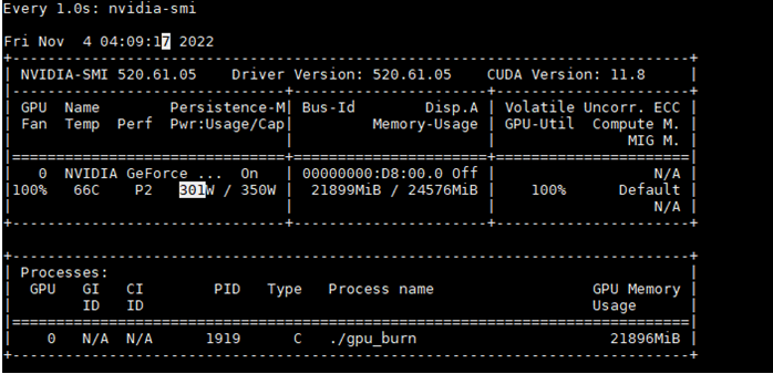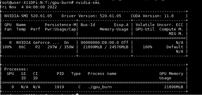GPU-burn시에, Nvidia-smi 확인.