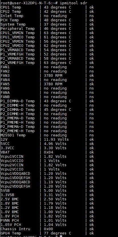 >> ipmitool sdr // ipmi 센서리딩.