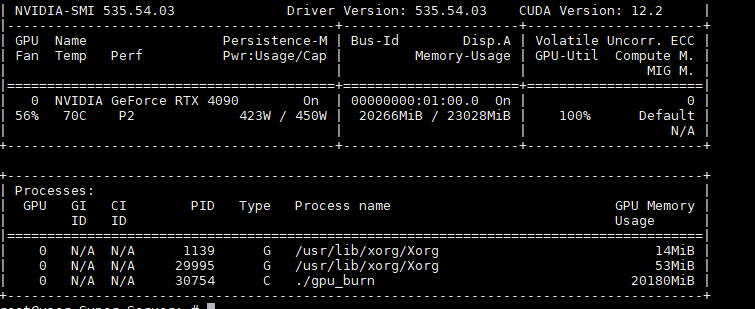 *카드는 4090으로 카드 성능상의 문제로 생각되지는 않았다. /드라이버 버전은 Nvidia Driver version 535.54.03 설치. (PPA : nvidia-driver-535)