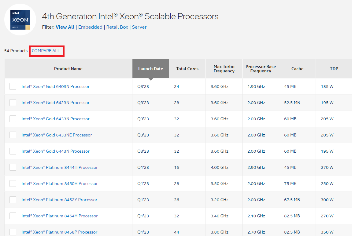 ii) 모든 프로세서에 대해서 Compare 하기 원하기 때문에, COMEPARE ALL을 선택해줍니다.